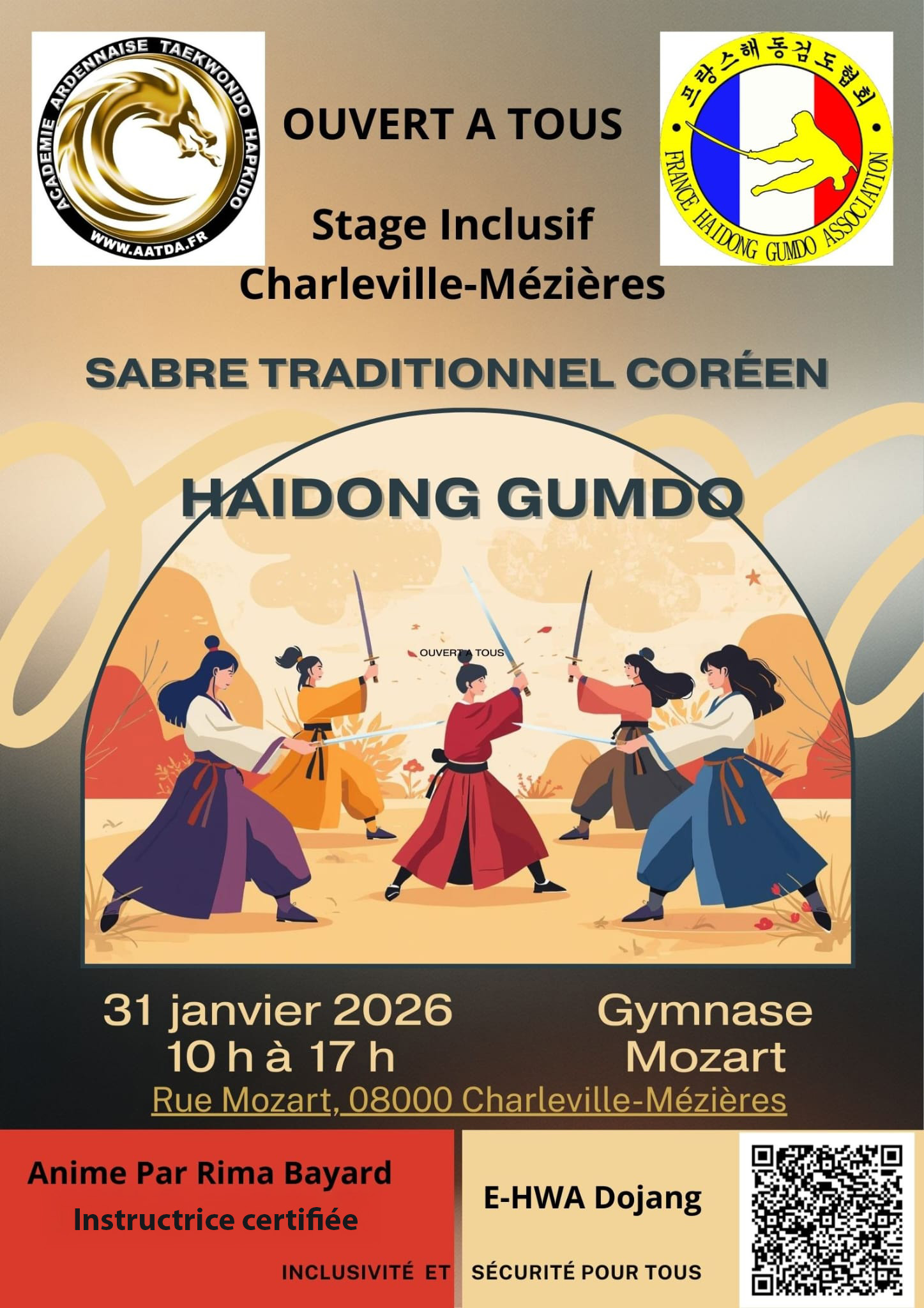 Cette année, notre club vous propose un stage de sabre traditionnel coréen inclusif et ouvert à tous à Charleville Mézières! Le Haidong Gumdo, art martial particulier venu de Corée et nécessitant le maniement